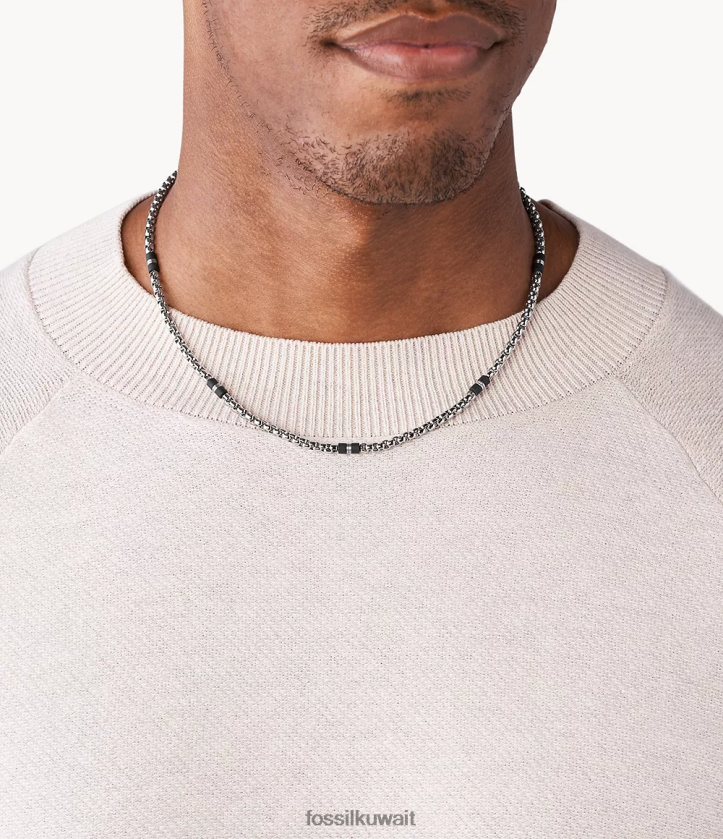 كيلووات Fossil رجال قلادة من الرخام والصلب مطرز لهجة الفضة 2F6F21913 مجوهرات