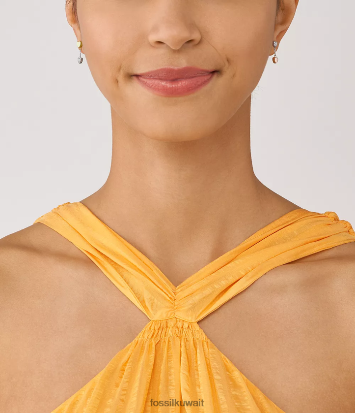 كيلووات Fossil نحيف أقراط متدلية من الفولاذ المقاوم للصدأ ثلاثية الألوان من سادي جالنتين نغمتان 2F6F21089 مجوهرات